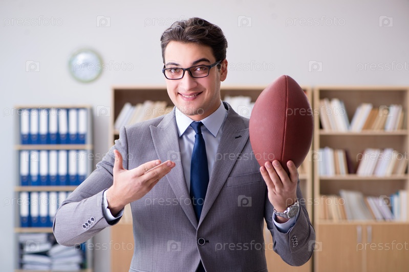 Бизнесмен с мячом американского футбола