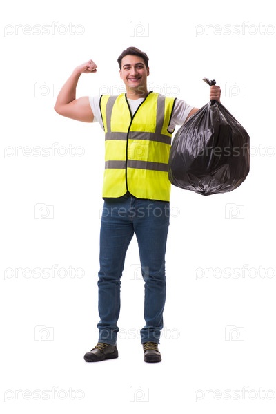 Человек с мешком мусора