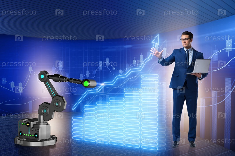 Бизнесмен в бизнес-концепции с роботизированной рукой