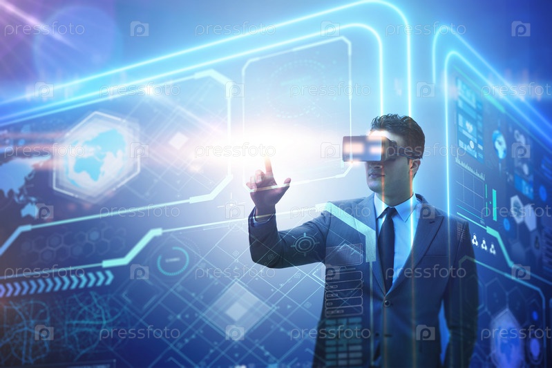 Бизнесмен в виртуальной торговле на фондовом рынке