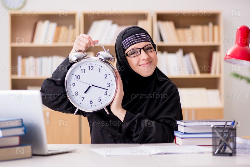 Мусульманка в хиджабе готовится к экзаменам