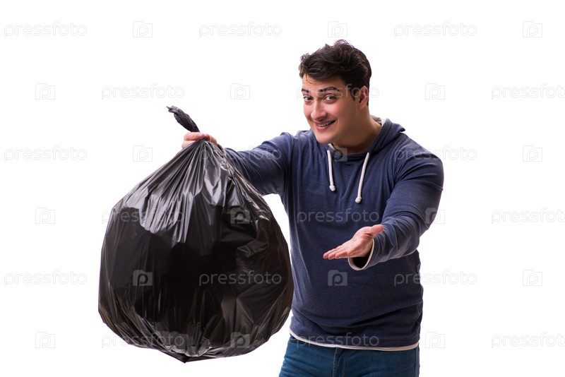 Человек с мешком мусора