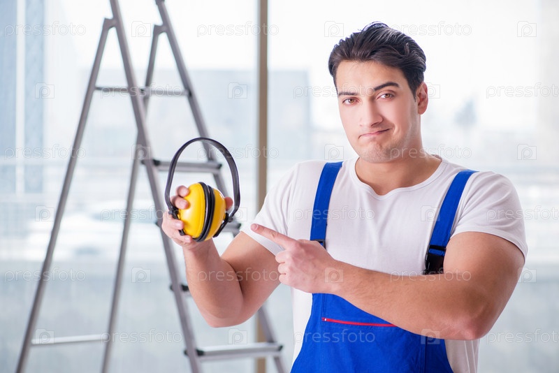 Рабочий с наушниками подавления шума