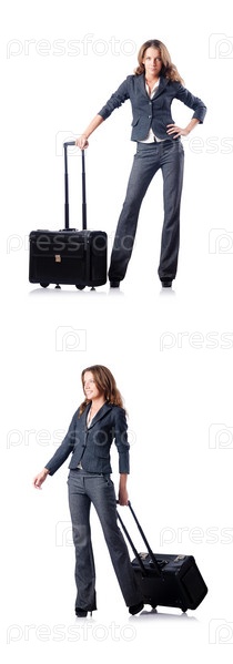 Бизнесмен с чемоданом на белом фоне