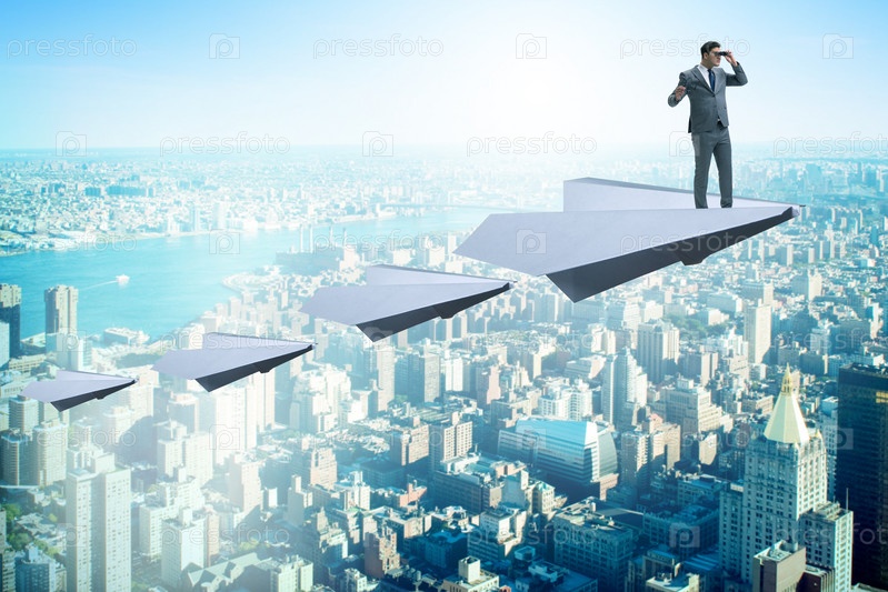 Бизнесмен летит над городом