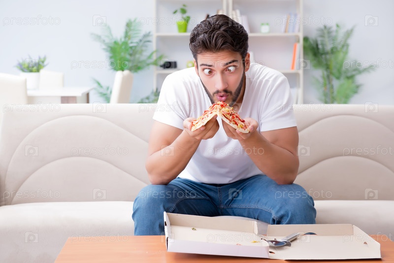 Человек ест пиццу
