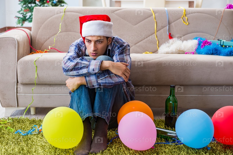 Парень с похмельем после рождественской вечеринки