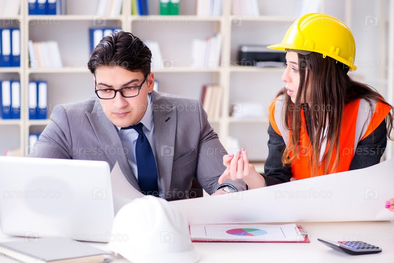 Руководитель рассматривает чертежи