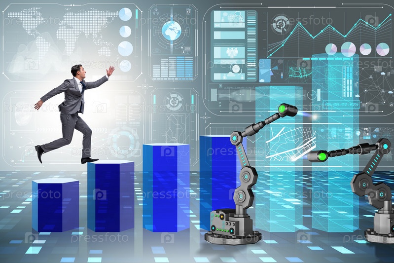 Бизнесмен ходит вверх по графику