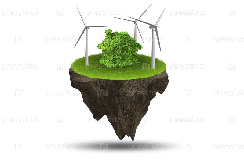 Летающий плавучий остров в концепции зеленой энергии - 3d визуализация