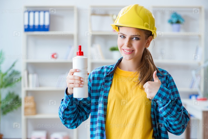 Молодая женщина делает ремонт у себя дома