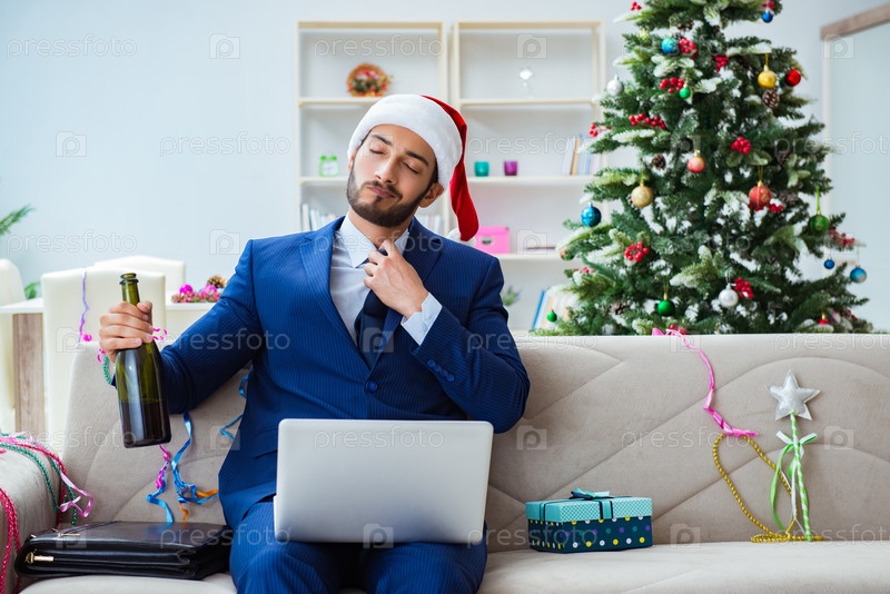 Бизнесмен, работающий во время Рождества
