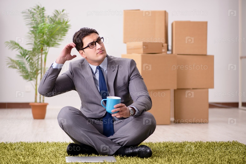 Бизнесмен, сидя на ковре в офисе