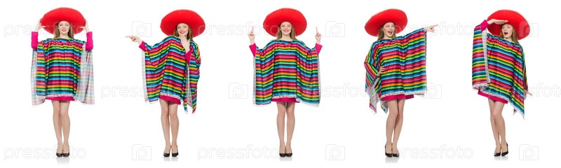 Красивая девушка в мексиканском пончо