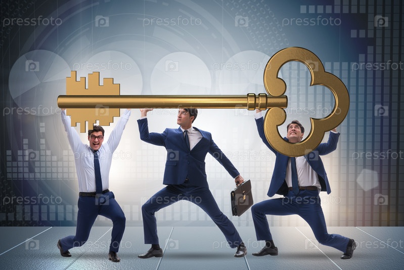 Бизнесмены с гигантским ключом