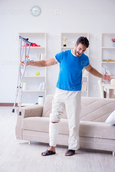 Травмированный молодой человек выздоравливает дома