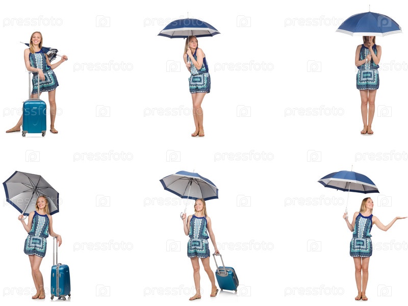 Женщина с зонтиком и чемоданом