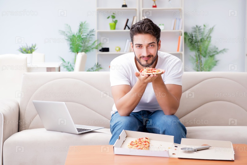 Человек ест пиццу