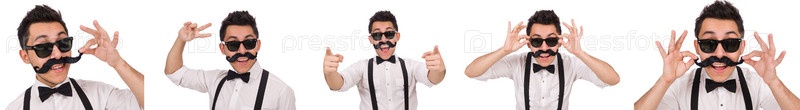 Молодой человек с усами на белом
