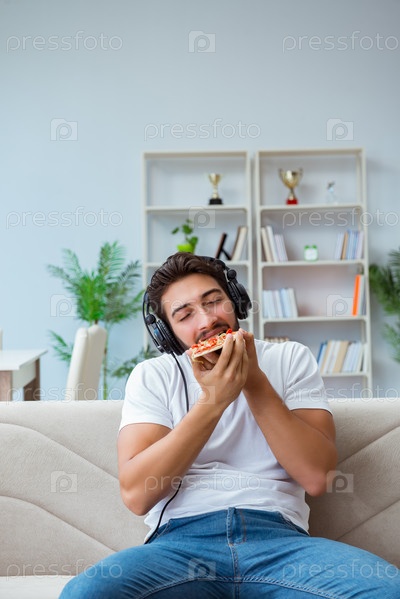 Человек ест пиццу
