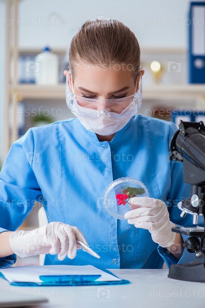 Женский ученый исследователь проводит эксперимент