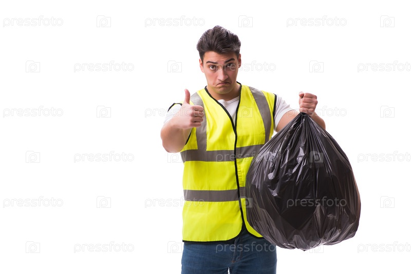 Человек с мешком мусора