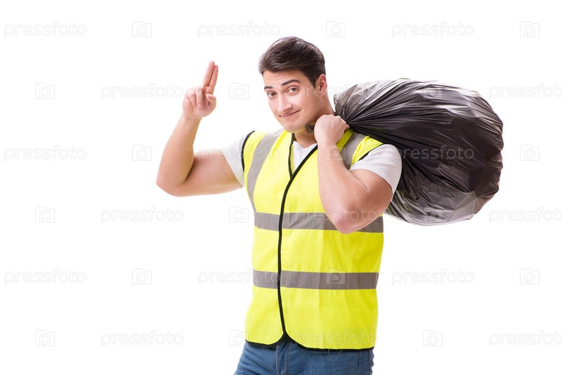 Человек с мешком мусора