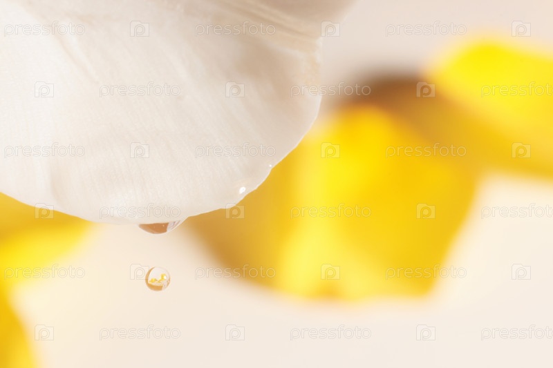 Падение капли воды с белого цветка