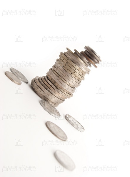 Различные монеты древних образцов на белом фоне