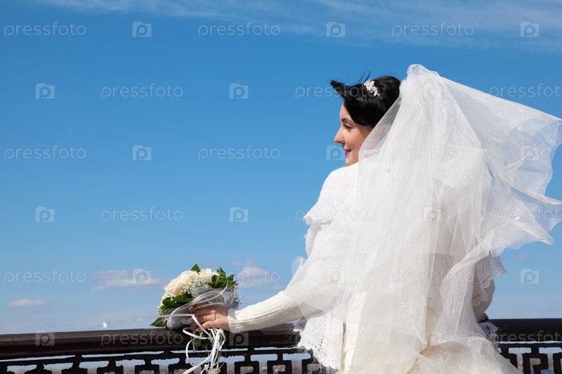 Невеста с букетом на фоне неба