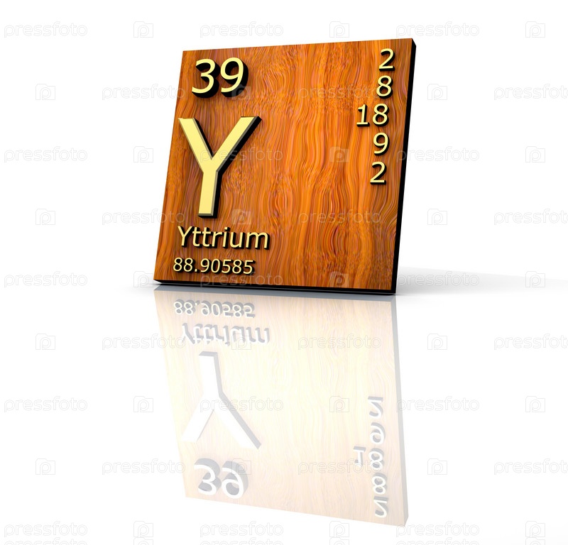 Иттрий, элемент периодической таблицы Менделеева на деревянной доске