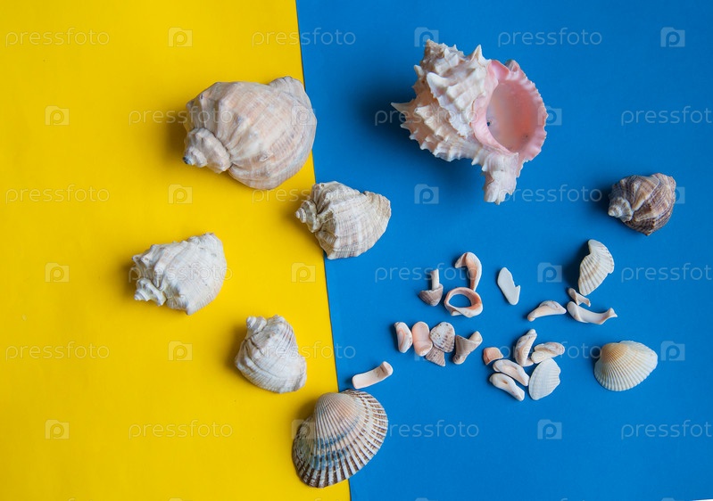 Раковины лежат на цветной бумаге