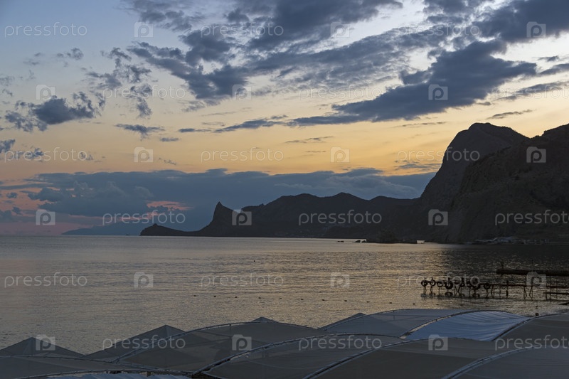 Силуэты прибрежных гор на фоне вечернего неба