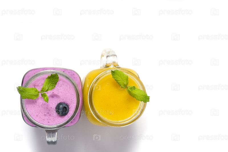 Желтый и фиолетовый смузи с мятой