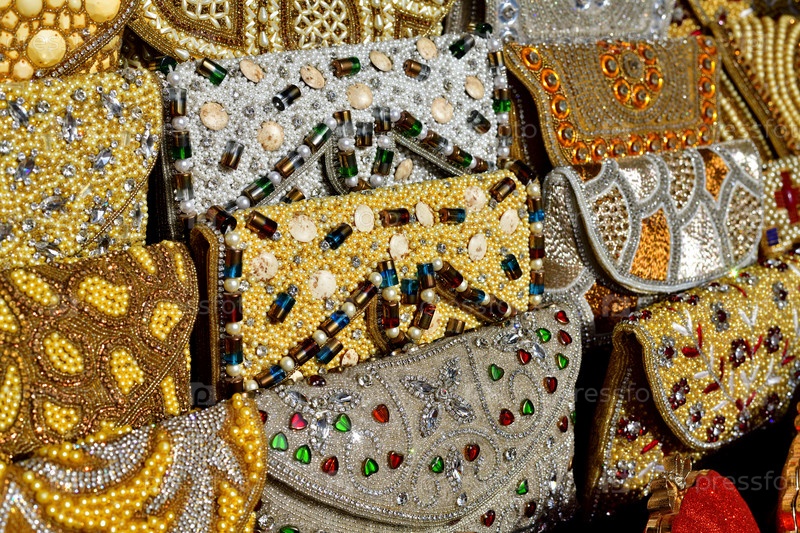 Женская сумка украшена полудрагоценными камнями и бисером на рынке в ОАЭ