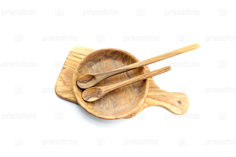 Деревянная посуда на белом фоне