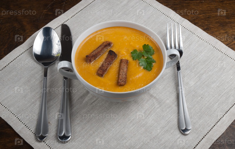 Суп из тыквы в тарелка на столе