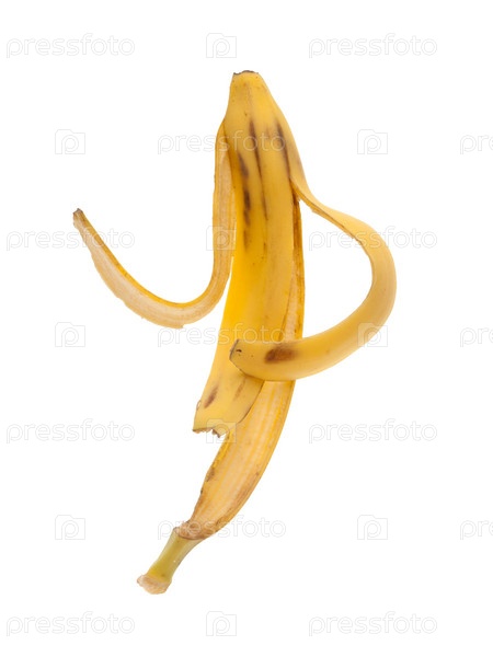 Скользкая корка банана на белом фоне
