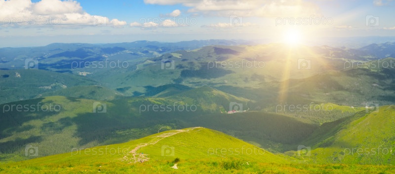 Восход солнца в горах, Говерла, Карпаты, Украины