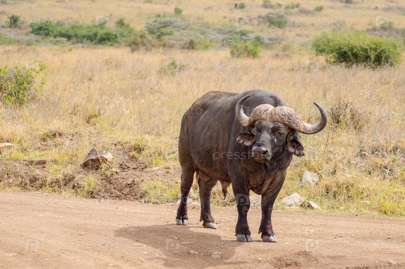 Буйвол в саванне Амбосели парка в Кении