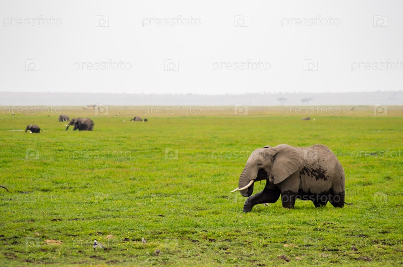 Слон в саванне Амбосели парка в Кении