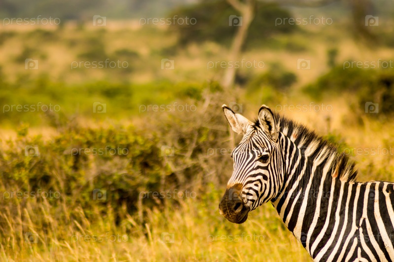 Зебра в саванне Амбосели парка в Кении