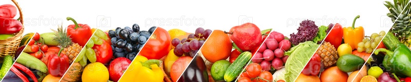 Фрукты и овощи на белом фоне