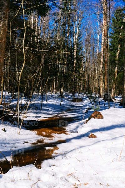 Ранний весенний пейзаж в лесу