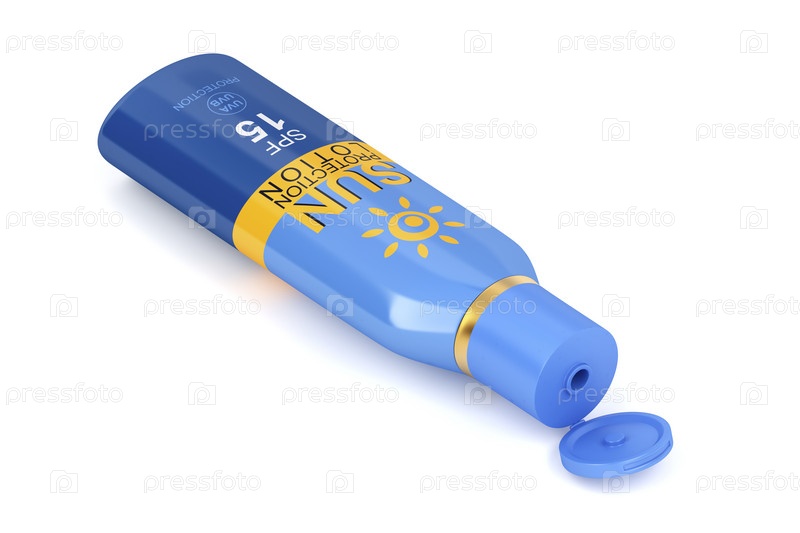 Солнцезащитный лосьон на белом фоне