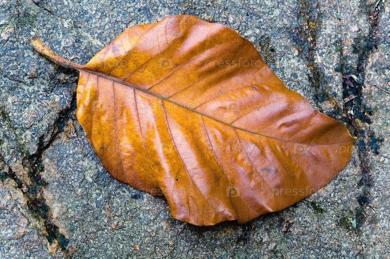 Сухой лист экзотического растения лежит на камне
