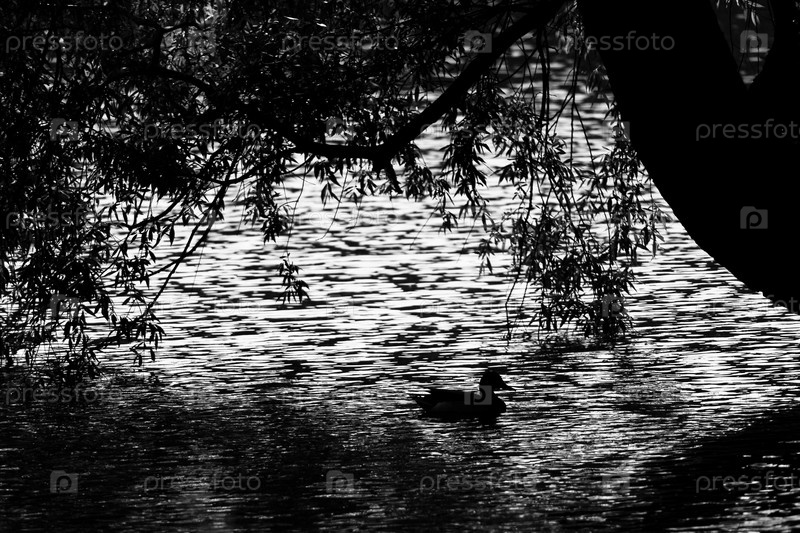 Силуэт утки на воде