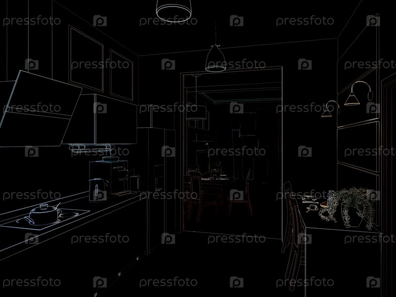 Интерьер кухни. 3D иллюстрации