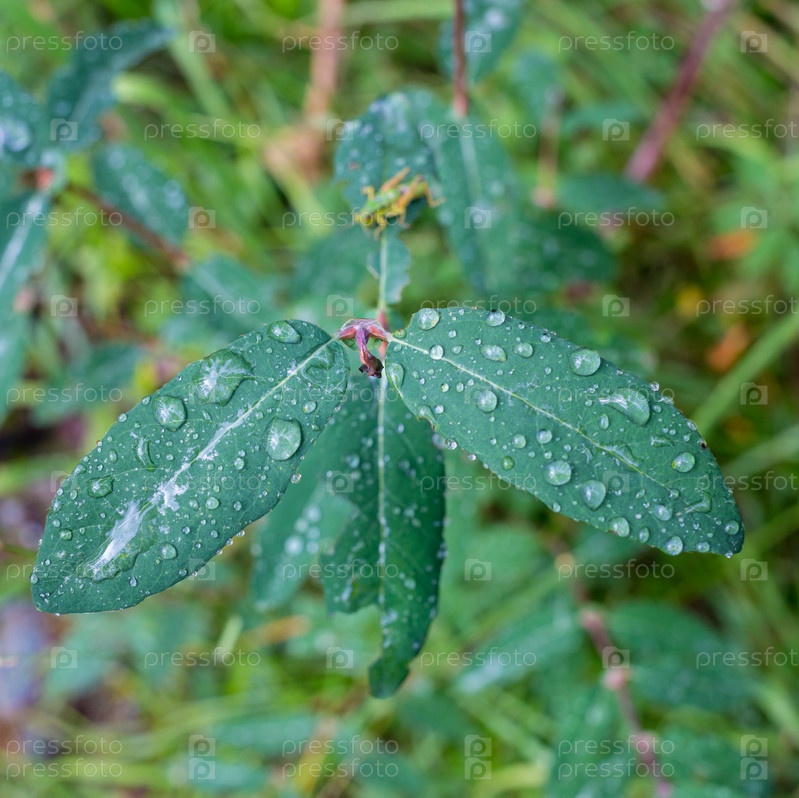 Зеленый лист с каплями воды