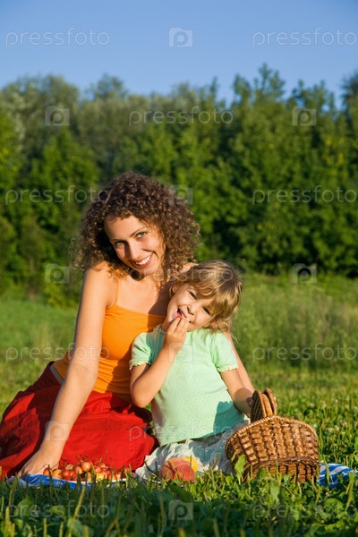 Мама и дочка на пикнике